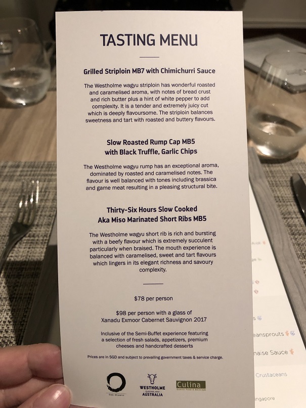 Semi-Buffet with entrée of Westholme Tri-Wagyu – SGD 78
