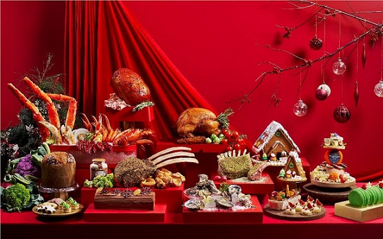 Seafood lovers will relish the expansive spread of fresh seafood, including freshly shucked seasonal Oysters, King Crab Leg, Boston Lobster, Tiger Prawns, Pacific Clam, Half Shell Scallops, Sea Conch, Black Mussel, and Crawfish. Also available is an extensive variety of cold cuts made in-house by our hotel’s Master Butcher, Chef Haiko Mayer, such as Home-cured Beef Salami, Virginia Ham, Pastrami, Mortadella, Paprika Lyoner, and Black Forest Ham. An irresistible assortment of festive treats awaits you at the dessert bar, including Dark Chocolate Log Cake, Homemade Christmas Stollen, Rum-soaked Fruit Cake, and much more.