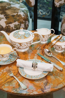In an homage to the resort’s heritage ficus trees, the tea is served on a signature ‘Tree’ stand. This sculptural, multi-level presentation, styled with gleaming Christofle silver accessories, creates a sense of visual theatre rarely seen in traditional tea services.